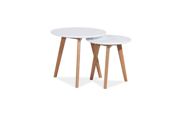 Prostota, wygoda i użyteczność to podstawowe wytyczne kolekcji MILAN, która stworzy niesamowity skandynawski wystrój w twoim domu. Zestaw stolików, blat MDF, kolor: biały / stelaż drewno, kolor: dąb